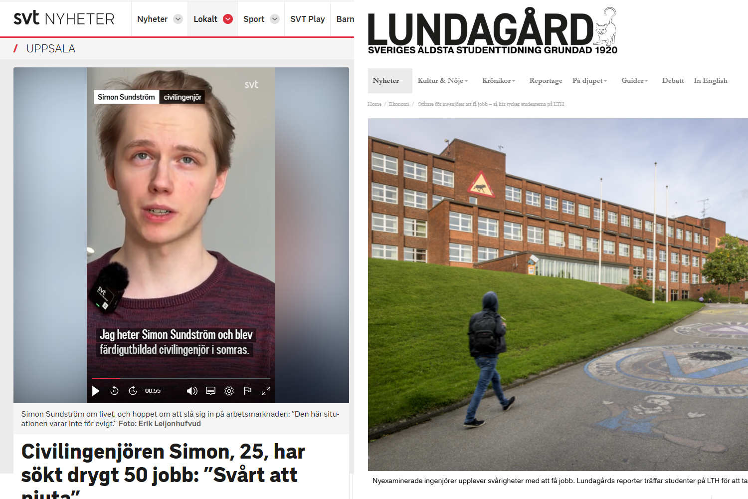 SVT Uppsala och Lundsgård har rapporterat om ingenjörers chanser att få jobb efter examen. Foto: Erik Leijonhufvud (SVT), Kennet Ruona (Lu Press)